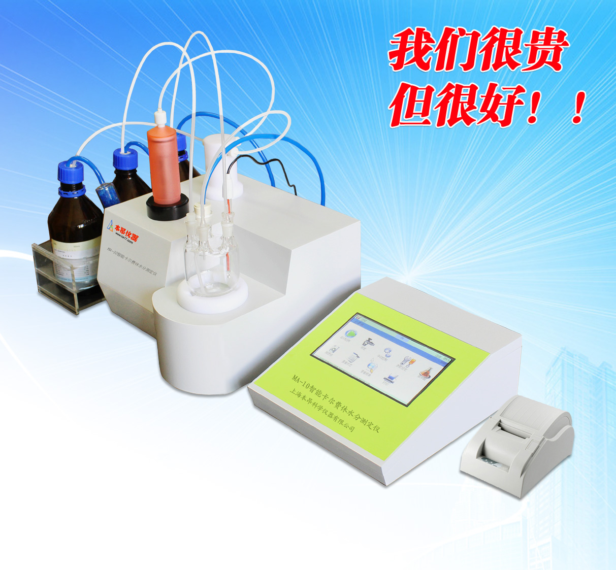 MA-10智能卡爾費休水分測定儀為上海本昂科學儀器有限公司和中國兵器工業集團第五三研究所共同研發的容量法智能水分分析系統。在2010年又和清華大學精密測試技術及儀器國家重點實驗室合作,用超精密位移測量技術對其做了改進。